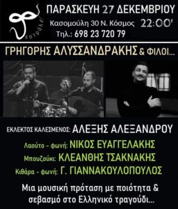 Ο Γρηγόρης Αλυσσανδράκης Παρασκευή 27/12 Στις 22:00 Στο Θεατράλε