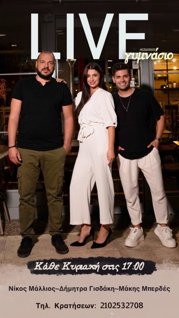 Κάθε Κυριακή στις 17:30 στο «Γυμνάσιο» στη Νέα Φιλαδέλφεια μαζί με την Δήμητρα Γισδάκη και το Νίκο Μάλλιο.