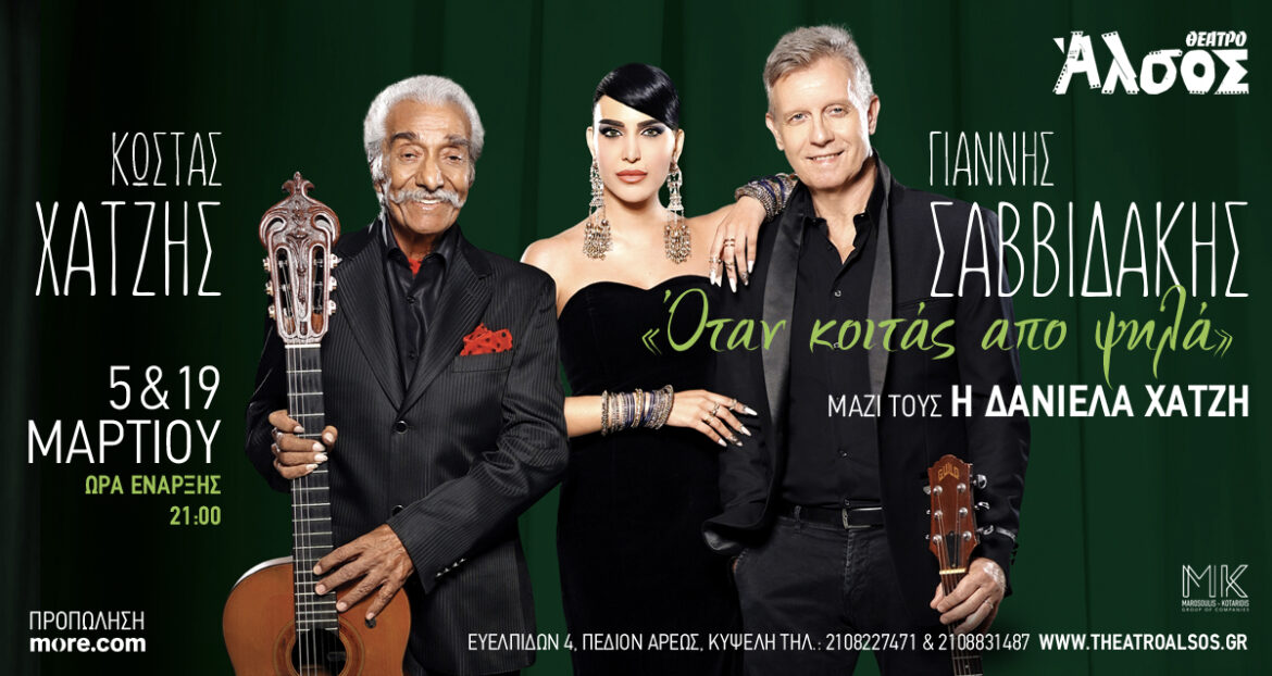 Ο σπουδαίος δημιουργός και πρωτοπόρος του κοινωνικού τραγουδιού Κώστας Χατζής συναντά στη σκηνή τον εξαιρετικό ερμηνευτή Γιάννη Σαββιδάκη για δύο μοναδικές παραστάσεις στο Θέατρο Άλσος, τις Τετάρτες 5 και 19 Μαρτίου.