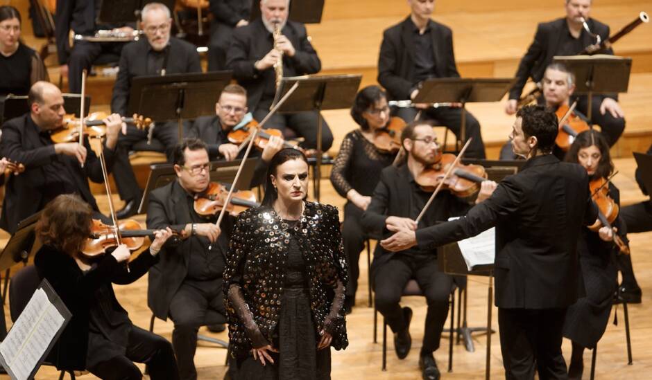Η ‘Μήδεια’ είναι ένα μονόπρακτο μελόδραμα που είχε εντυπωσιάσει βαθιά τον Μότσαρτ χαρακτηρίζοντάς το ως εξαιρετικό. Η Καρυοφυλλιά Καραμπέτη ενσαρκώνει μοναδικά και τα έξι πρόσωπα του έργου, σε μία ανεπανάληπτη αλληλεπίδραση λόγου και μουσικής που κόβει την ανάσα, καθώς οι διάφοροι αντιφατικοί χαρακτήρες παρελαύνουν διαδοχικά αυξάνοντας την ένταση μέσα από τις αντικρουόμενες προσωπικότητές τους, με τη μουσική να υπερτονίζει αυτές τις συγκρούσεις και να χρωματίζει τα συναισθήματα.