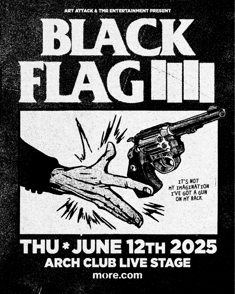 Με επικεφαλής τον ιδρυτή και κιθαρίστα Greg Ginn , οι Black Flag από την Hermosa Beach της Καλιφόρνια υπόσχονται να χαρίσουν στο ελληνικό κοινό την απόλυτη εμπειρία πανκ, γεμάτη ένταση, πάθος και τον ανατρεπτικό ήχο που τους έκανε αθάνατους. Από εμβληματικά κομμάτια όπως το “Rise Above” και το “Six Pack”, μέχρι την πιο σύγχρονη δημιουργική τους ταυτότητα, αυτή η βραδιά θα αποτελέσει ορόσημο για τη ροκ σκηνή της χώρας.