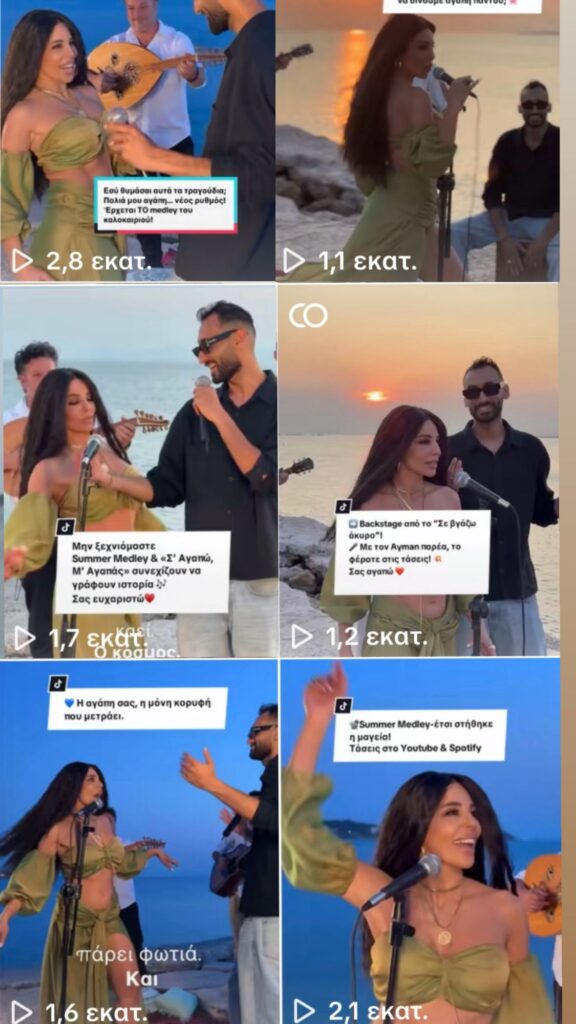 Η δημοφιλής ερμηνεύτρια, που χρόνια τώρα πρωταγωνιστεί στην μουσική σκηνή, διανύοντας την πιο δημιουργική καλλιτεχνική της περίοδο, ενώνοντας τις δυνάμεις της με τον ταλαντούχο Ayman, μας παρουσίασαν ένα εκρηκτικό «Summer Medley», που κυριολεκτικά σάρωσε, με εκατοντάδες χιλιάδες viewς στο Youtube, αλλά και πολλά εκατομμύρια προβολές στο Τικ Τοκ, και στα social media της γενικότερα.