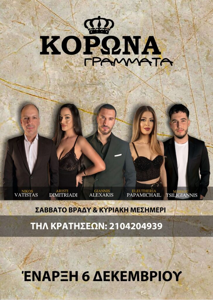Στο «ΚΟΡΩΝΑ ΓΡΑΜΜΑΤΑ» συμμετέχει σε ένα σχήμα με ταλαντούχους ερμηνευτές και ερμηνεύτριες που αναλαμβάνουν να κάνουν τις νύχτες μας μοναδικές και αξέχαστες.